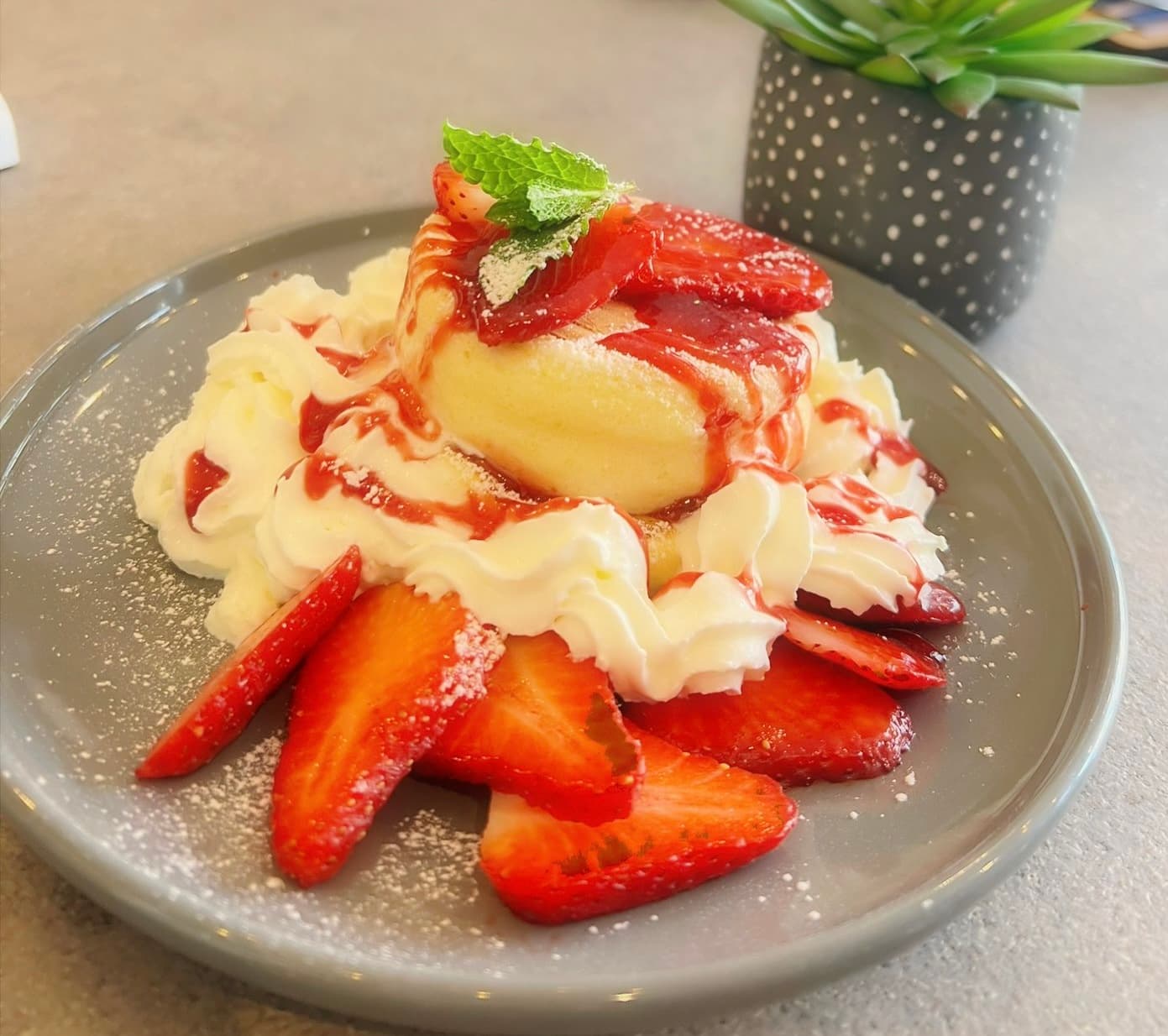 Indulge in our light and fluffy Japanese soufflé pancakes, a delightful twist on a traditional favourite. Enjoy them sweet with fresh fruits, crunchy biscuits, whipped cream, and a drizzle of syrup, or opt for a savoury version with crispy bacon, egg, and melted cheese. With their airy texture and melt-in-your-mouth softness, these pancakes are the perfect treat for breakfast, brunch, or any moment of bliss.
